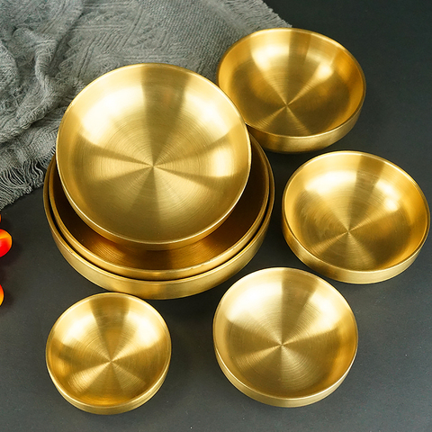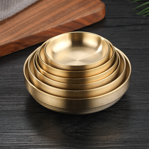 Khay Bữa Ăn Tối Tấm Cắm Trại Tấm Bữa Ăn Tối Món Ăn Bạc Đánh Bóng Tấm Vàng Vòng Thép Không Gỉ Kim Loại 3-5 Ngày Hàn Quốc 14Cm 5.5Inch
