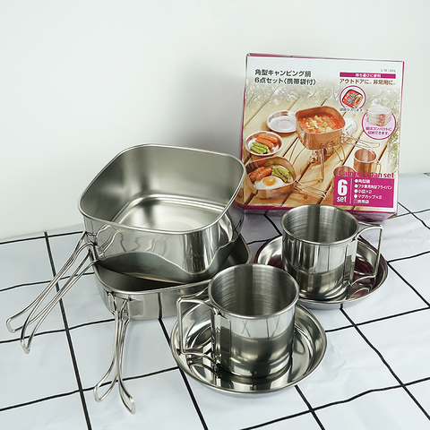Chenfanステンレス鋼キャンプポット混乱屋外食器調理器具6個セットステンレス鋼カップボウルポータブルセット