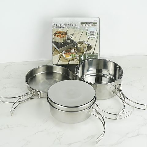 Chenfanステンレス鋼キャンプポット混乱屋外食器調理器具セットステンレス鋼カップボウルポータブルセット