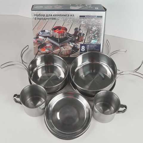 Chenfanステンレス鋼キャンプポット混乱屋外食器8個セット調理器具セットステンレス鋼カップボウルポータブルセット